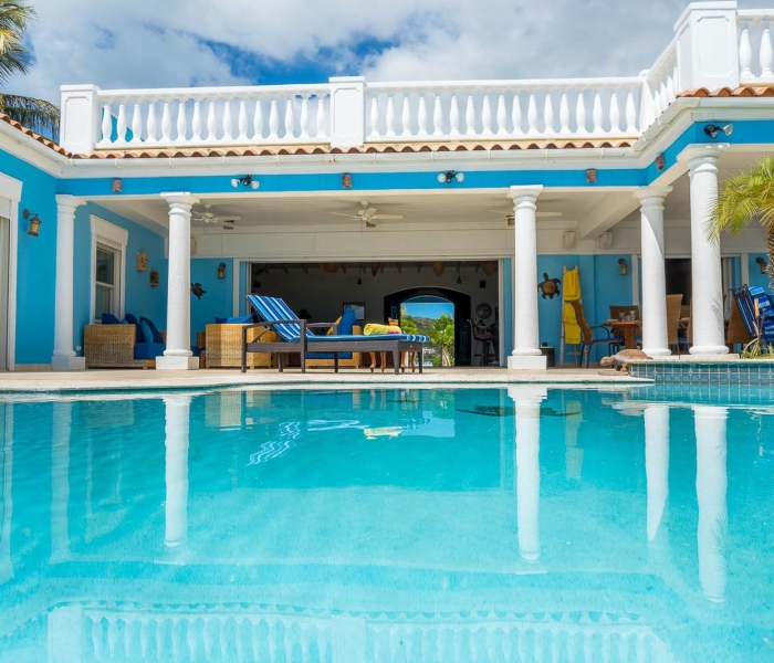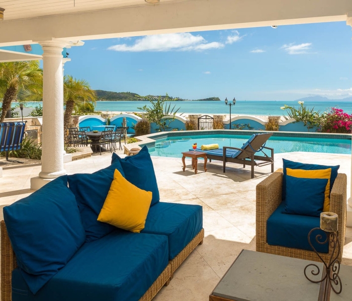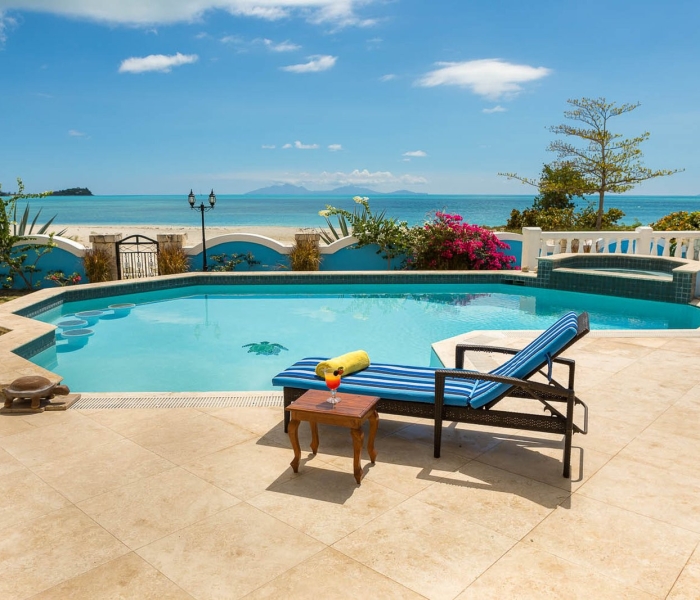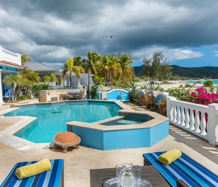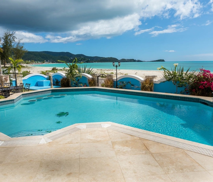 Enjoy the wonderful Caribbean Sea views from this spectacular beachfront Antigua villa, located right on the beautiful beach of Jolly Harbour. The villa offers a nice outdoor setting with pool and professional BBQ area.