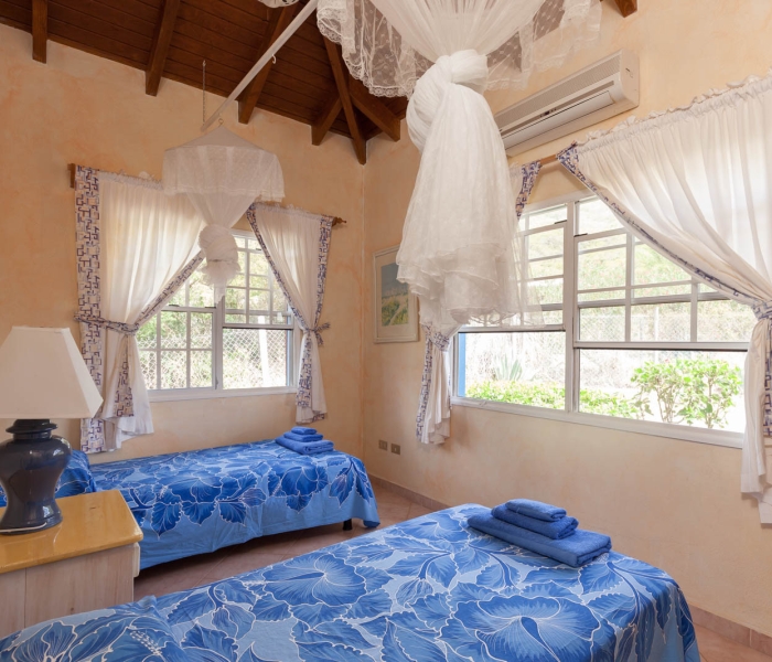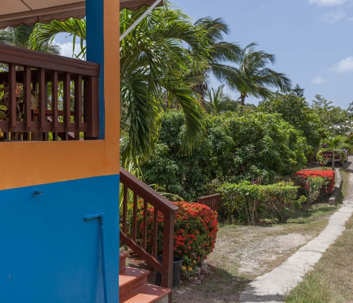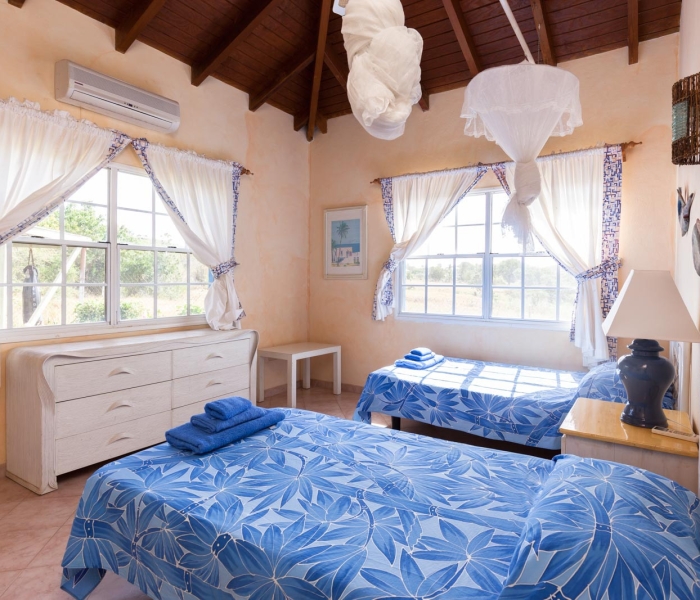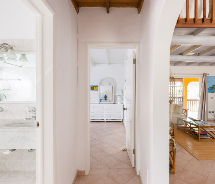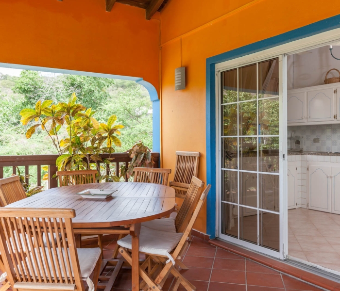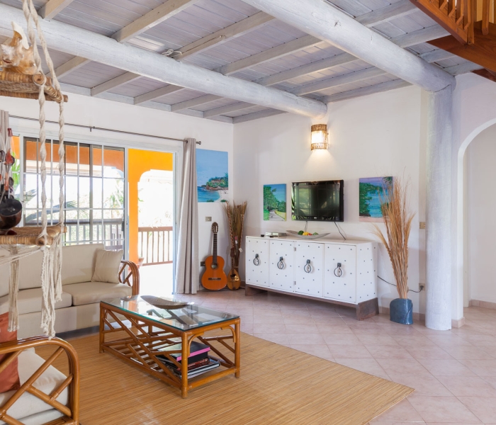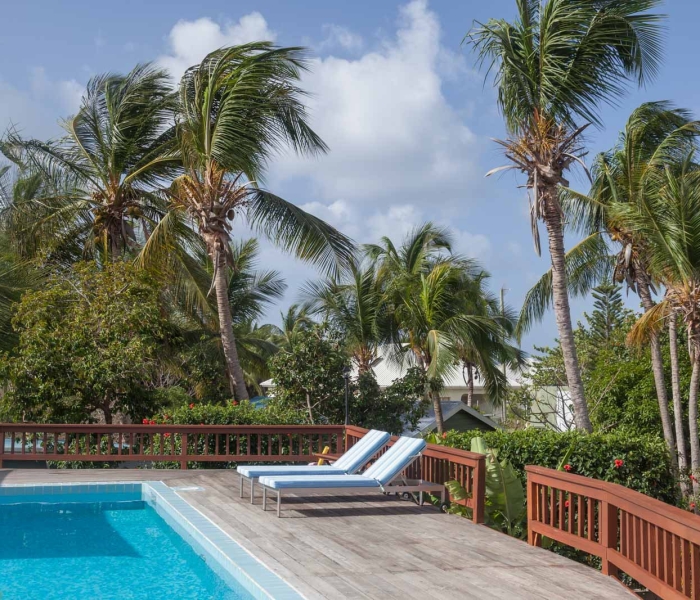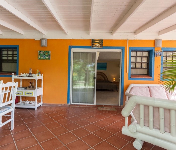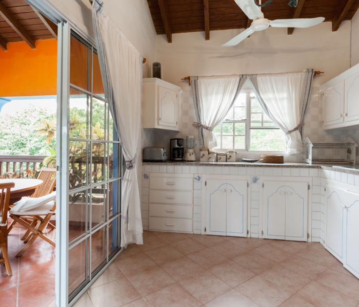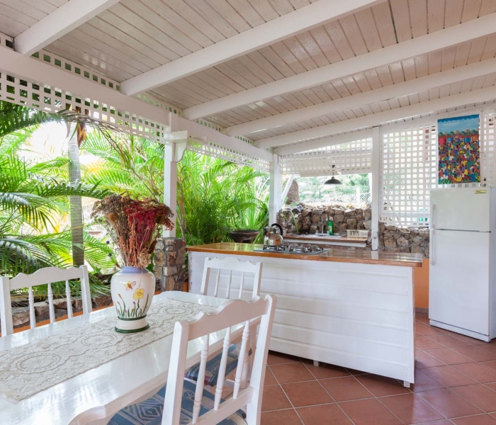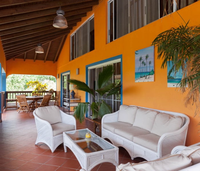 Typical Caribbean style home for sale located at Piccadilly, a tranquil location on the southeast coast of the island of Antigua, at about five minutes driving from English Harbour, Shirley Heights, and the beautiful beaches of Galleon, Pigeon and Rendezvous. The villa is surrounded by a lavish tropical garden, filled with fruits trees such as Guava, Mango, Avocado, Orange, Papaya, Coconut and colorful flowers. The villa offers an intimate, secluded and relaxing atmosphere. The main floor of the villa houses living room, kitchen, veranda with dining table and lounge areas, three bedrooms and two bathrooms. On the above level is situated the loft, with single beds. The lower level of the villa houses a private apartment that includes the forth bedroom with private bathroom, small veranda, and outdoor kitchenette; this room has its own entrance. A few steps from the villa is located a large swimming pool, pool deck with dining area and BBQ.
