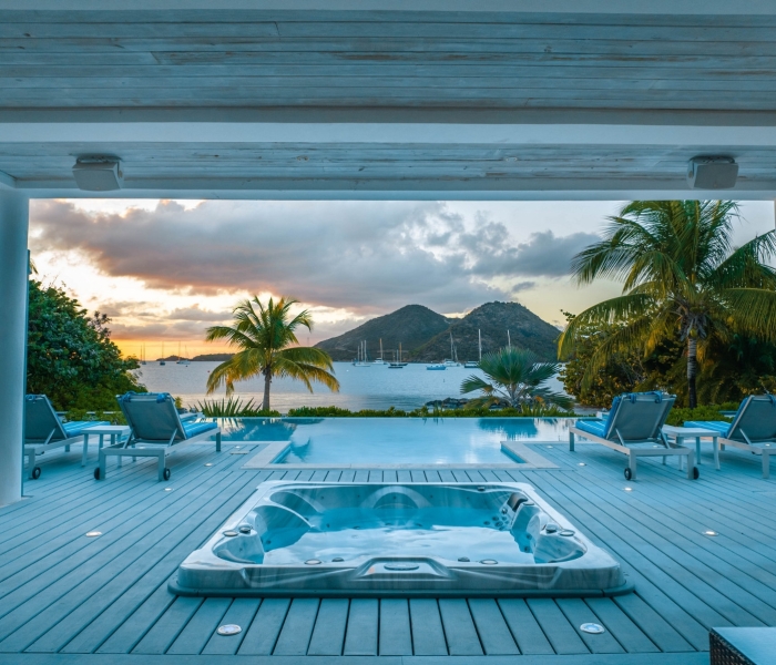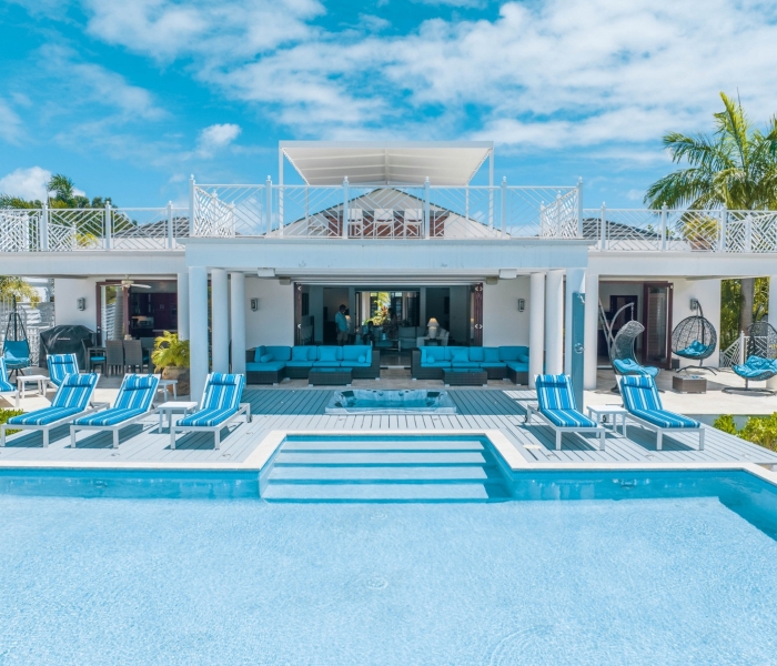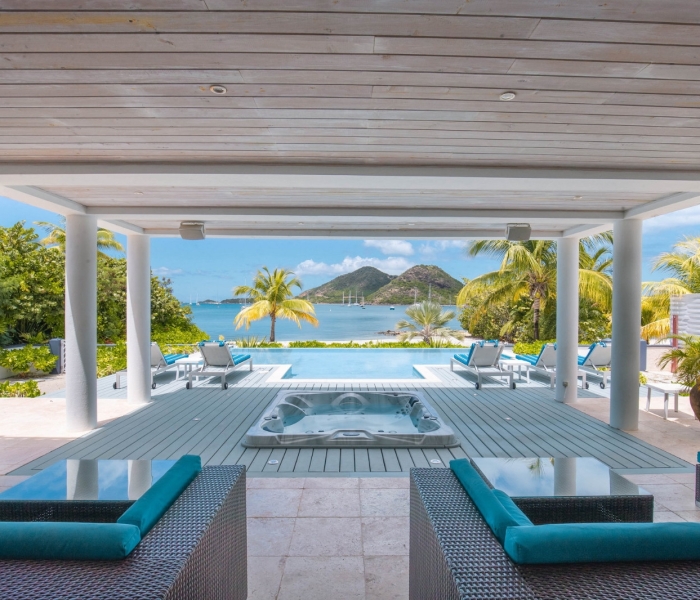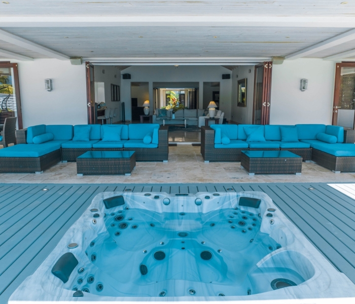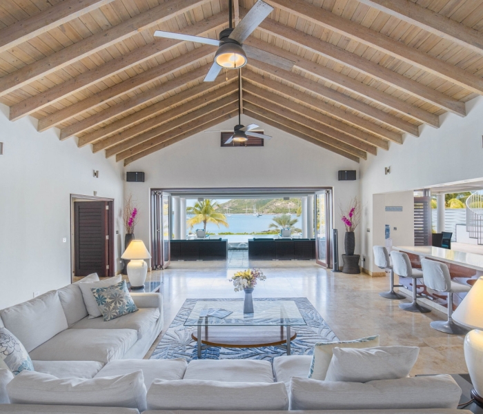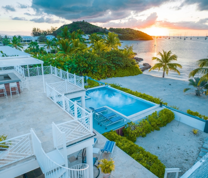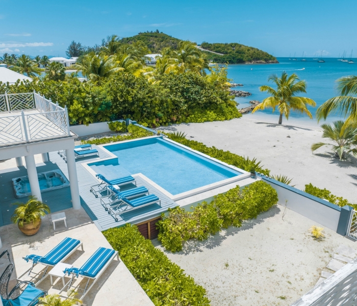 Stunning, beachfront villa located in North Finger, Jolly Harbour. The villa is elegantly decorated, with private pool and outdoor Jacuzzi, set in front of a white sandy beach.