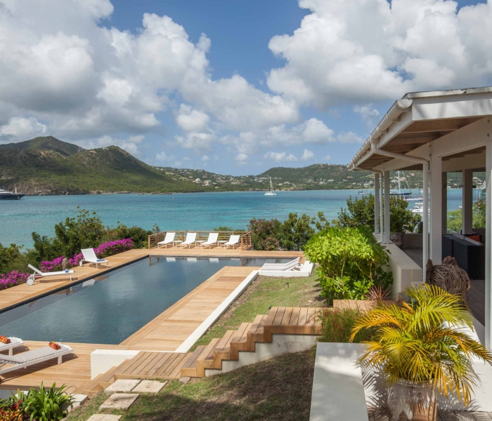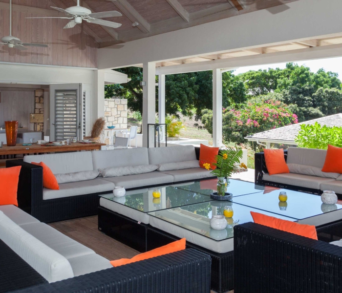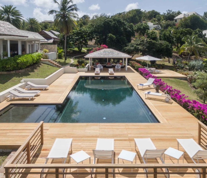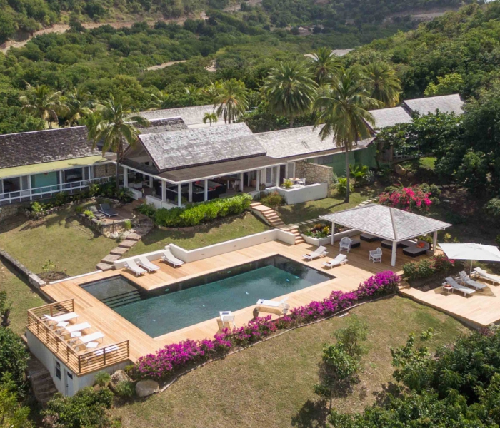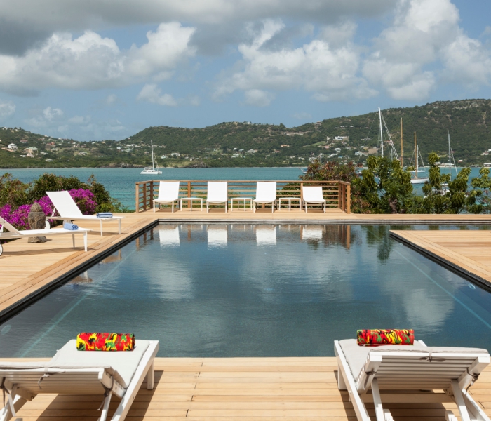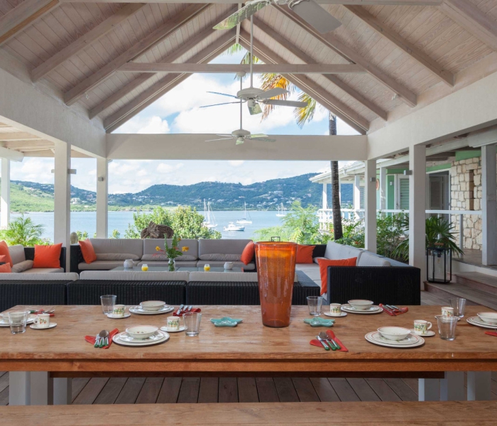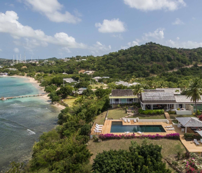 Villa in affitto situata a English Harbour, Antigua. La villa si trova tra due splendide spiagge caraibiche della costa meridionale dell'isola, ed offre viste spettacolari del mare. Questa proprietà è ideale per vacanze di famiglia, duranti gli eventi di vela e per celebrare piccoli eventi.