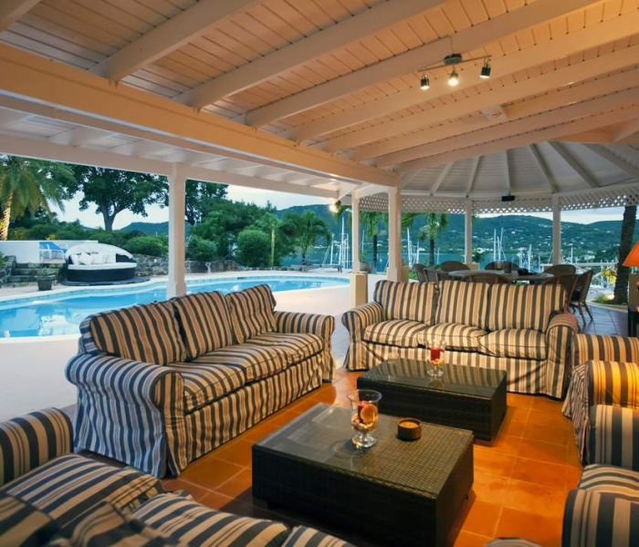 Deliziosa villa per le vacanze con piscina a English Harbour, arredata con cura, gode di viste panoramiche sul porto di Falmouth. La spiaggia di Pigeon e il centro si possono raggiungere a piedi.