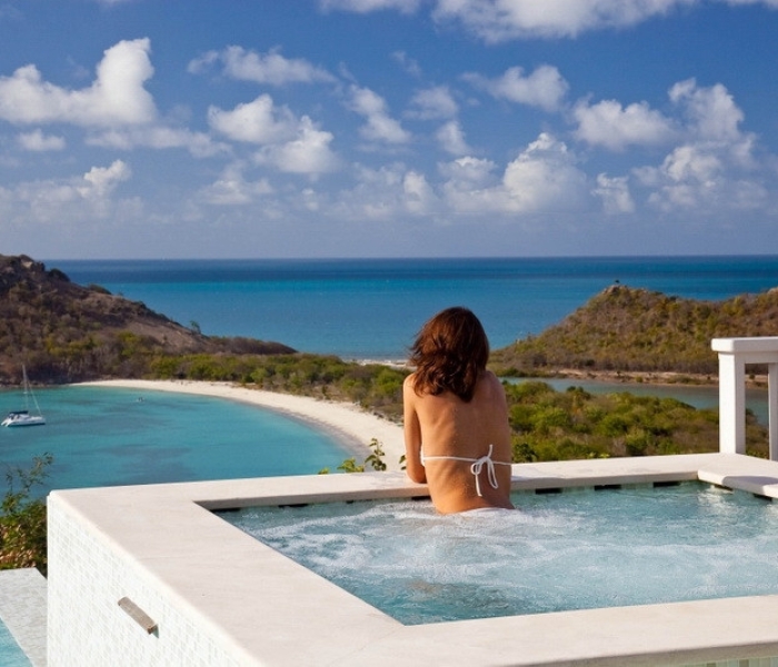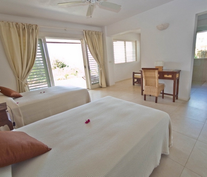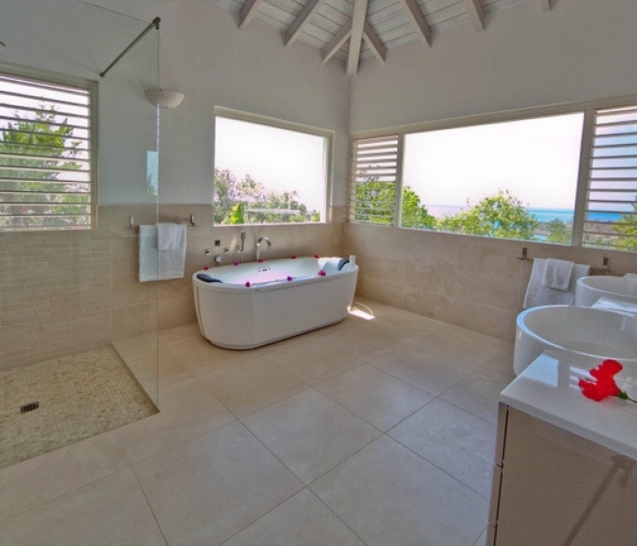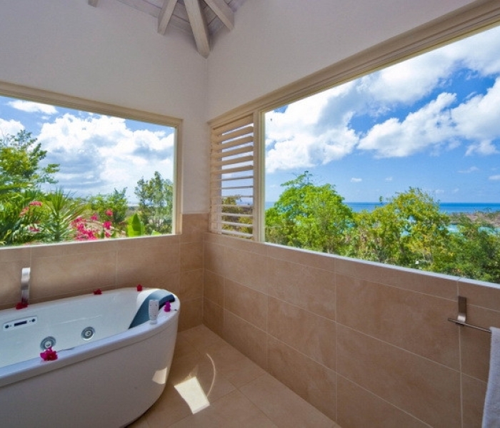 Stupenda villa in vendita ad Antigua, situata sulla rinomata collina di Galley Bay Heights, offre viste incredibili sulla baia di Deep Bay e sul Mar dei Caraibi. La villa offre 690 mq di superficie, e si dispone su due piani. Il piano superiore ospita cucina, dispensa, area da pranzo e soggiorno che si aprono per mezzo di finestre scorrevoli sulla veranda, dotata di area da pranzo esterna, BBQ, area lounge, piscina, idromassaggio e ampio solarium. Sul piano superiore si trovano tre camere con bagno privato, la camera padronale ha sia doccia sia vasca da bagno, mentre le altre camere hanno la doccia. Le camere hanno accesso sulla veranda e godono di viste sul mar caraibico. Sul piano inferiore si trova un'altra camera con bagno con doccia, e propria veranda privata. Qui si trova un'altra camera con letto singolo e bagno generalmente usata dal personale di servizio, e la lavanderia.